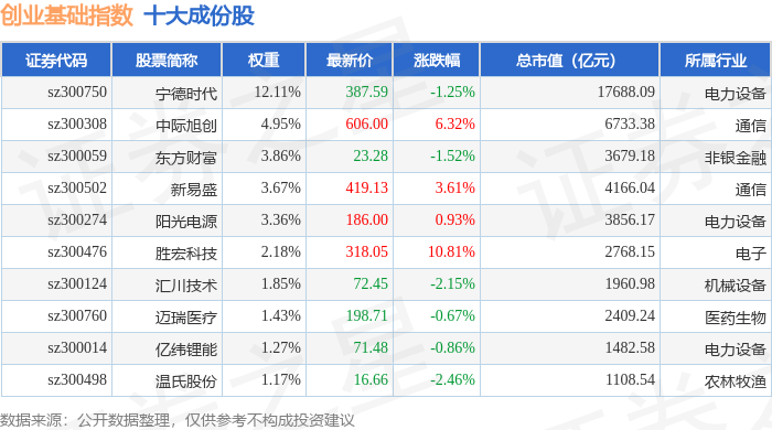 创业基础(399640)指数十大成份股详情如下: