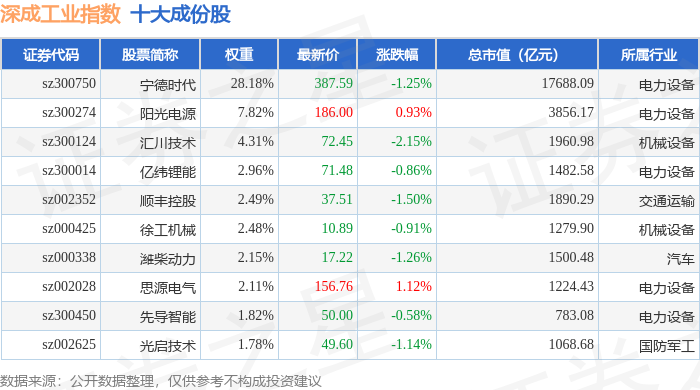 深成工业(399682)指数十大成份股详情如下: