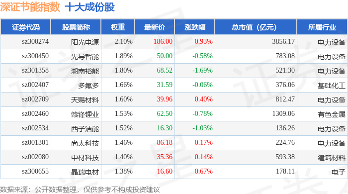 深证节能(399695)指数十大成份股详情如下: