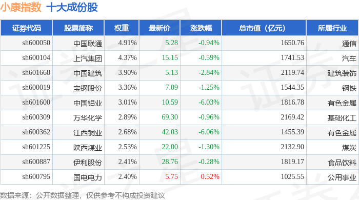 小康指数(399901)十大成份股详情如下: