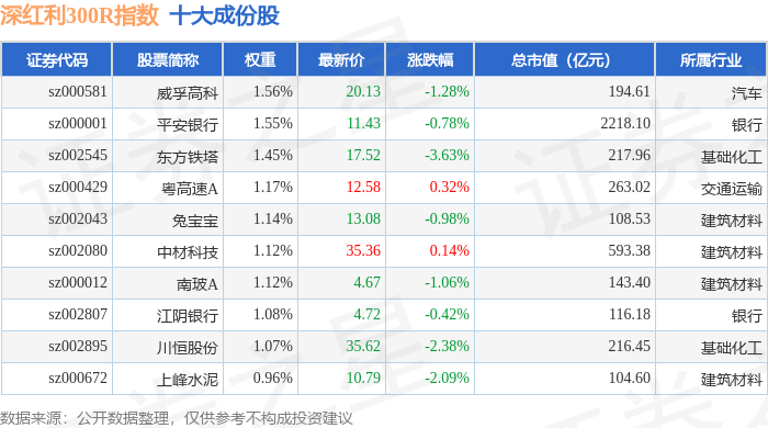 证券之星消息,12月9日,深红利300R(470062)指数报收于8072.74点,跌0.91%,成交1817.33亿元,换手率1.54%。当日该指数成份股中,上涨的有64家,厦门港务以10.0%的涨幅领涨,下跌的有233家,科达利以7.09%的跌幅领跌。