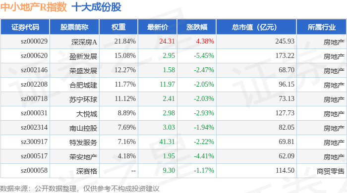 中小地产R(471002)指数十大成份股详情如下:
