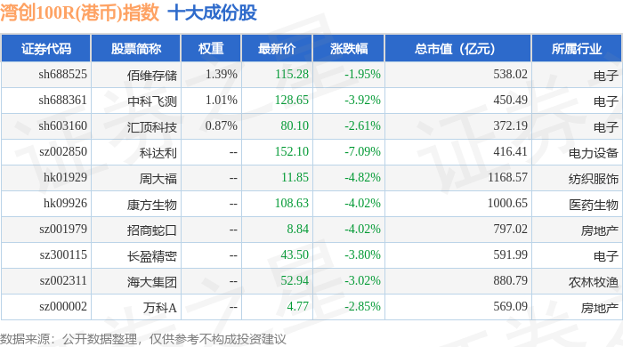 湾创100R(港币)(480002)指数十大成份股详情如下: