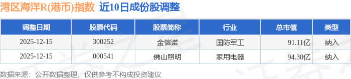 近10日内湾区海洋R(港币)(480020)指数成份股做了调整,新纳入了2只股票。