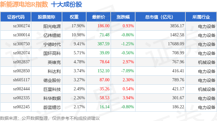 近10日内新能源电池R(480027)指数成份股做了调整,新纳入了5只股票,剔除了1只股票。