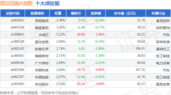 近10日内国证回购R(480063)指数成份股做了调整,新纳入了22只股票,剔除了10只股票。