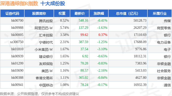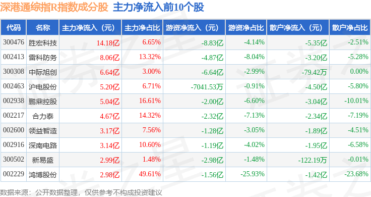 资金流向方面,深港通综指R(483005)指数成份股当日主力资金净流出合计283.98亿元,游资资金净流入合计11.69亿元,散户资金净流入合计272.3亿元。成份股资金流向详情见下表: