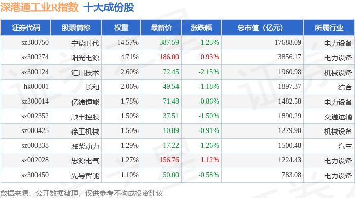 资金流向方面,深港通工业R(483017)指数成份股当日主力资金净流出合计63.0亿元,游资资金净流入合计2.04亿元,散户资金净流入合计60.96亿元。成份股资金流向详情见下表: