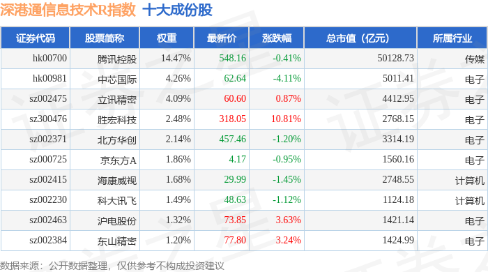 深港通信息技术R(483027)指数十大成份股详情如下: