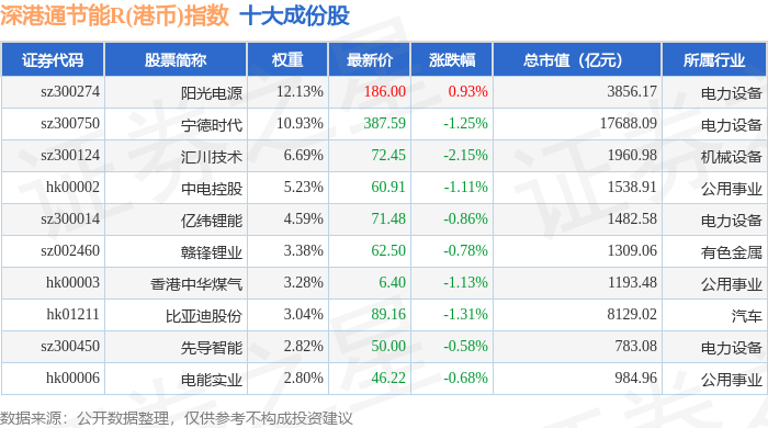 深港通节能R(港币)(483086)指数十大成份股详情如下: