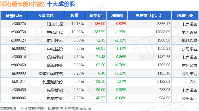 深港通节能R(483085)指数十大成份股详情如下: