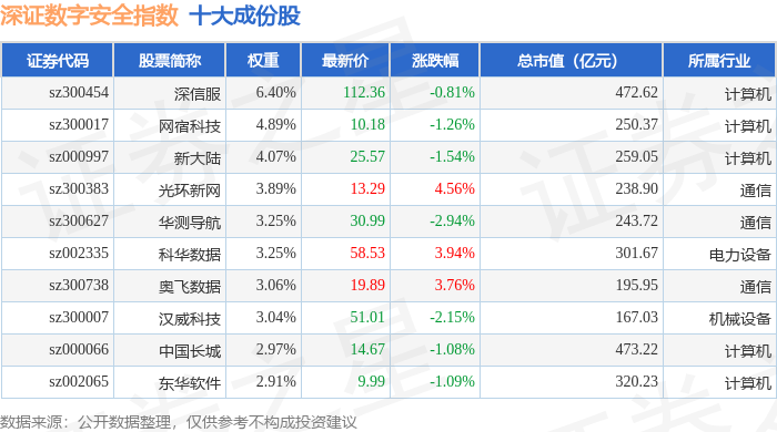 深证数字安全(970052)指数十大成份股详情如下: