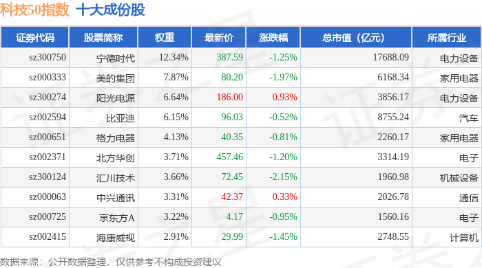 科技50(970080)指数十大成份股详情如下: