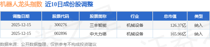 近10日内机器人龙头(980071)指数成份股做了调整,新纳入了2只股票。