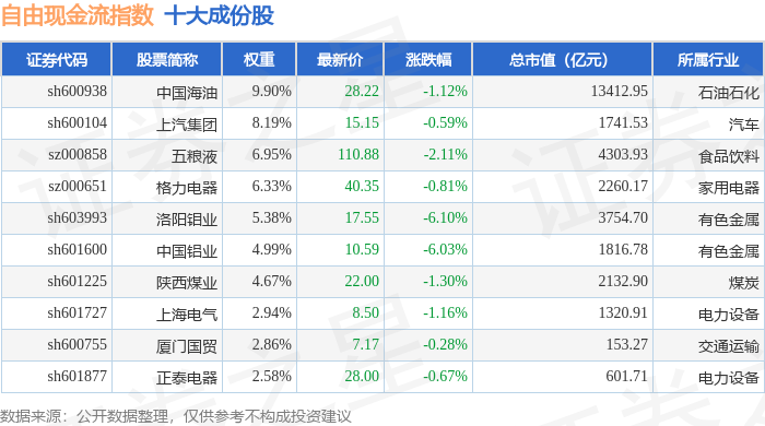 自由现金流(980092)指数十大成份股详情如下: