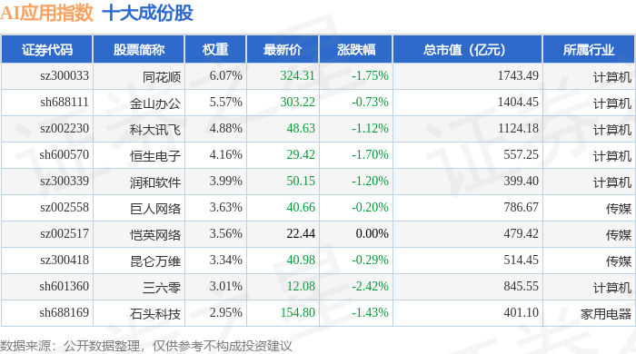 AI应用(980112)指数十大成份股详情如下: