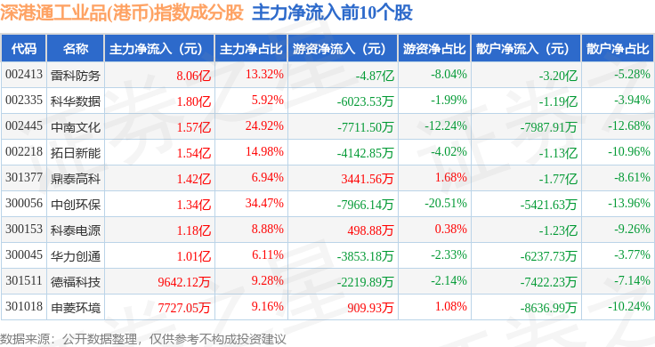 资金流向方面,深港通工业品(港币)(983070)指数成份股当日主力资金净流出合计61.12亿元,游资资金净流入合计2.33亿元,散户资金净流入合计58.79亿元。成份股资金流向详情见下表: