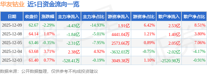 12月9日的资金流向数据方面,主力资金净流出4.43亿元,占总成交额14.93%,游资资金净流入1.91亿元,占总成交额6.42%,散户资金净流入2.53亿元,占总成交额8.51%。