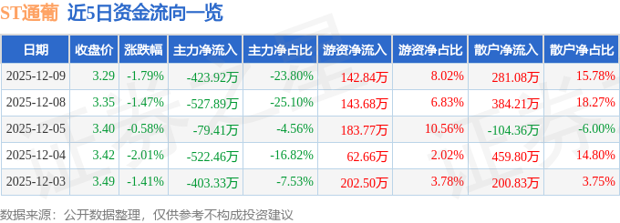 证券之星消息,截至2025年12月9日收盘,ST通葡(600365)报收于3.29元,下跌1.79%,换手率1.26%,成交量5.38万手,成交额1781.39万元。