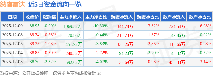 12月9日的资金流向数据方面,主力资金净流出1069.32万元,占总成交额10.3%,游资资金净流入344.78万元,占总成交额3.32%,散户资金净流入724.54万元,占总成交额6.98%。