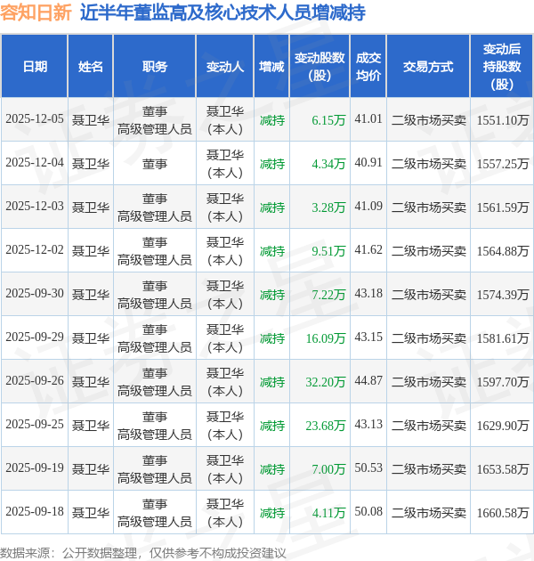 容知日新近半年内的董监高及核心技术人员增减持详情如下: