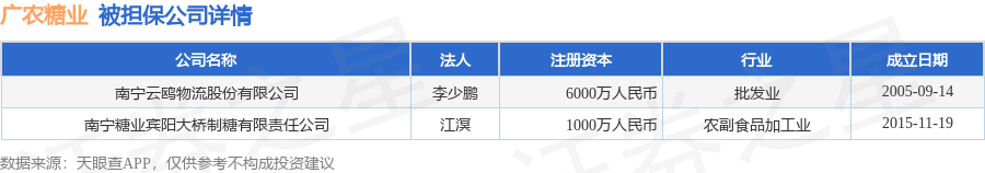 广农糖业12月8日披露2笔对外担保,被担保公司2家。对外担保明细如下表: