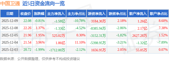 证券之星消息,截至2025年12月9日收盘,中国卫通(601698)报收于22.08元,下跌0.81%,换手率1.56%,成交量66.08万手,成交额14.61亿元。