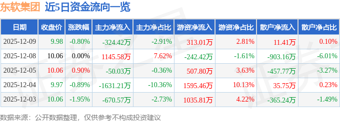证券之星消息,截至2025年12月9日收盘,东软集团(600718)报收于9.98元,下跌0.8%,换手率0.93%,成交量11.1万手,成交额1.11亿元。