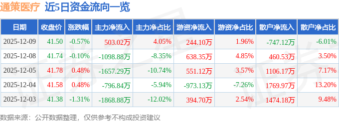 12月9日的资金流向数据方面,主力资金净流入503.02万元,占总成交额4.05%,游资资金净流入244.1万元,占总成交额1.96%,散户资金净流出747.12万元,占总成交额6.01%。
