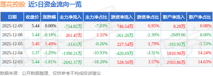 证券之星消息,截至2025年12月9日收盘,莲花控股(600186)报收于5.44元,上涨0.0%,换手率1.1%,成交量19.66万手,成交额1.07亿元。