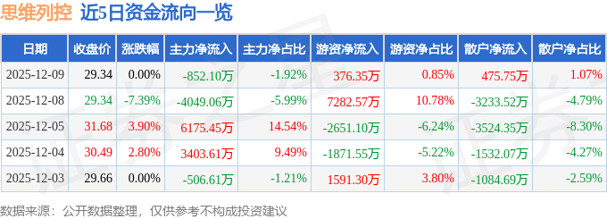 12月9日的资金流向数据方面,主力资金净流出852.1万元,占总成交额1.92%,游资资金净流入376.35万元,占总成交额0.85%,散户资金净流入475.75万元,占总成交额1.07%。