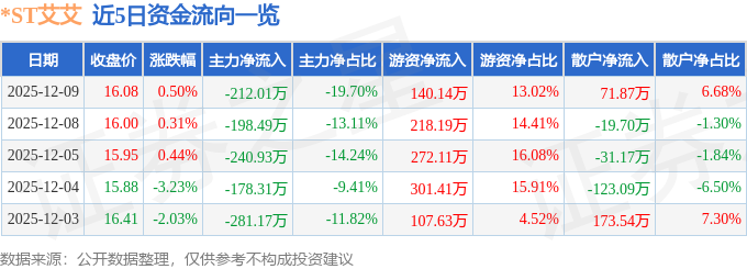 证券之星消息,截至2025年12月9日收盘,*ST艾艾(603580)报收于16.08元,上涨0.5%,换手率0.51%,成交量6714.0手,成交额1076.27万元。