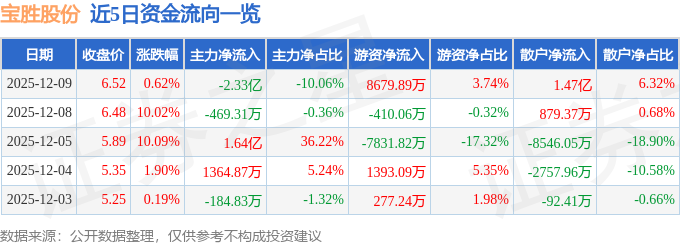 证券之星消息,截至2025年12月9日收盘,宝胜股份(600973)报收于6.52元,上涨0.62%,换手率24.86%,成交量340.99万手,成交额23.19亿元。