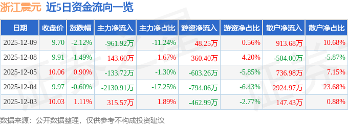 12月9日的资金流向数据方面,主力资金净流出961.92万元,占总成交额11.24%,游资资金净流入48.25万元,占总成交额0.56%,散户资金净流入913.68万元,占总成交额10.68%。