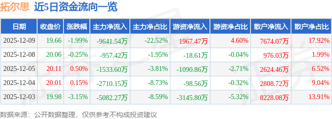 证券之星消息,截至2025年12月9日收盘,拓尔思(300229)报收于19.66元,下跌1.99%,换手率2.48%,成交量21.61万手,成交额4.28亿元。