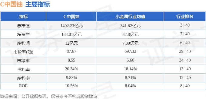 中国铀业2025年三季报显示,前三季度公司主营收入137.64亿元,同比上升23.17%;归母净利润12.0亿元,同比上升26.03%;扣非净利润11.98亿元,同比上升30.91%;其中2025年第三季度,公司单季度主营收入42.13亿元,同比上升34.58%;单季度归母净利润4.35亿元,同比上升79.03%;单季度扣非净利润4.36亿元,同比上升94.52%;负债率51.9%,投资收益448.85万元,财务费用1.82亿元,毛利率20.34%。C中国铀(001280)主营业务:天然铀资源的采冶、销售及贸易,以及独居石、铀钼等放射性共伴生矿产资源综合利用及产品销售。