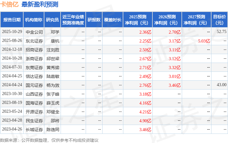 以下是详细的盈利预测信息: