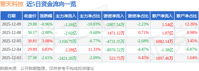 12月9日的资金流向数据方面,主力资金净流出1.26亿元,占总成交额10.03%,游资资金净流出2807.54万元,占总成交额2.23%,散户资金净流入1.54亿元,占总成交额12.26%。