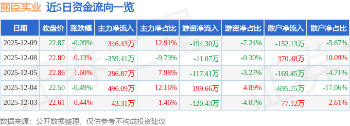 12月9日的资金流向数据方面,主力资金净流入346.43万元,占总成交额12.91%,游资资金净流出194.3万元,占总成交额7.24%,散户资金净流出152.13万元,占总成交额5.67%。