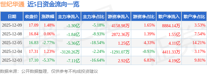 证券之星消息,截至2025年12月9日收盘,世纪华通(002602)报收于17.09元,上涨1.48%,换手率2.15%,成交量147.58万手,成交额25.2亿元。