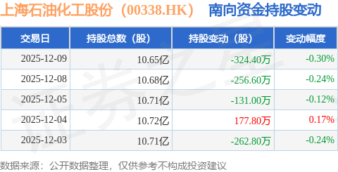 证券之星消息,12月9日南向资金减持324.4万股上海石油化工股份(00338.HK)。近5个交易日中,获南向资金减持的有4天,累计净减持797.0万股。近20个交易日中,获南向资金减持的有9天,累计净减持79.2万股。截至目前,南向资金持有上海石油化工股份(00338.HK)10.65亿股,占公司已发行普通股的33.14%。