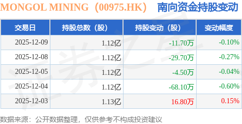 证券之星消息,12月9日南向资金减持11.7万股MONGOL MINING(00975.HK)。近5个交易日中,获南向资金减持的有4天,累计净减持97.2万股。近20个交易日中,获南向资金减持的有14天,累计净减持320.4万股。截至目前,南向资金持有MONGOL MINING(00975.HK)1.12亿股,占公司已发行普通股的10.7%。