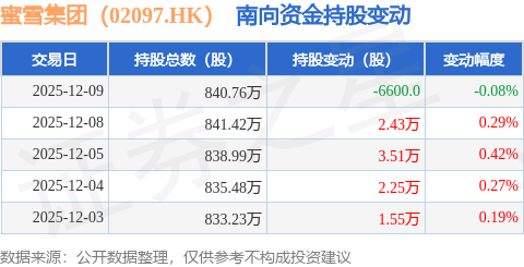 证券之星消息,12月9日南向资金减持6600.0股蜜雪集团(02097.HK)。近5个交易日中,获南向资金增持的有4天,累计净增持9.08万股。近20个交易日中,获南向资金减持的有10天,累计净减持4.91万股。截至目前,南向资金持有蜜雪集团(02097.HK)840.76万股,占公司已发行普通股的5.56%。