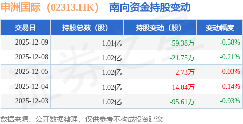 证券之星消息,12月9日南向资金减持59.38万股申洲国际(02313.HK)。近5个交易日中,获南向资金减持的有3天,累计净减持159.97万股。近20个交易日中,获南向资金增持的有14天,累计净增持398.9万股。截至目前,南向资金持有申洲国际(02313.HK)1.01亿股,占公司已发行普通股的6.72%。