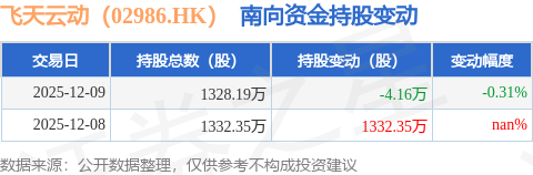 证券之星消息,12月9日南向资金减持4.16万股飞天云动(02986.HK)。截至目前,南向资金持有飞天云动(02986.HK)1328.19万股,占公司已发行普通股的10.2%。