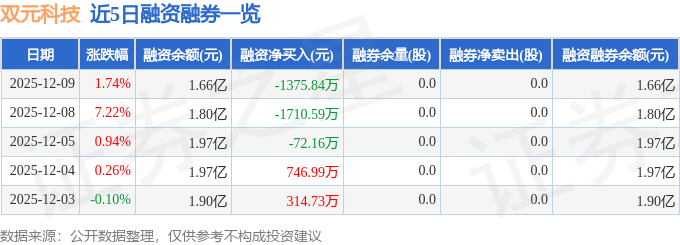双元科技融资融券信息显示,融资方面,当日融资买入2628.0万元,融资偿还4003.85万元,融资净偿还1375.84万元。融券方面,融券卖出0.0股,融券偿还0.0股,融券余量0.0股,融券余额0.0万元。融资融券余额1.66亿元。