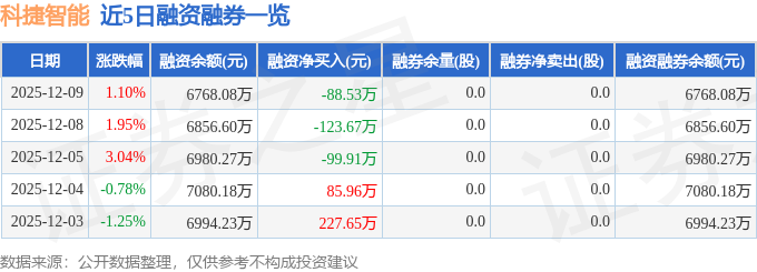科捷智能融资融券信息显示,融资方面,当日融资买入309.03万元,融资偿还397.56万元,融资净偿还88.53万元。融券方面,融券卖出0.0股,融券偿还0.0股,融券余量0.0股,融券余额0.0万元。融资融券余额6768.08万元。