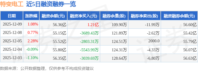 特变电工融资融券信息显示,融资方面,当日融资买入6.67亿元,融资偿还5.46亿元,融资净买入1.21亿元,净买入额两市排名第12。融券方面,融券卖出18.15万股,融券偿还30.14万股,融券余量109.9万股,融券余额2461.7万元。融资融券余额56.6亿元。