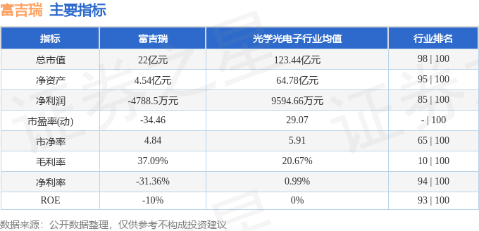 富吉瑞2025年三季报显示,前三季度公司主营收入1.53亿元,同比下降33.73%;归母净利润-4788.5万元,同比下降536.43%;扣非净利润-5011.93万元,同比下降642.95%;其中2025年第三季度,公司单季度主营收入3762.66万元,同比下降46.14%;单季度归母净利润-2796.98万元,同比下降2169.04%;单季度扣非净利润-3009.62万元,同比下降4980.61%;负债率38.08%,财务费用188.48万元,毛利率37.09%。富吉瑞(688272)主营业务:公司是一家主要从事红外热成像产品和系统的研发、生产和销售,并为客户提供解决方案的高新技术企业。公司以红外热成像技术为基础,以图像处理为核心,逐步向固态微光、短波、紫外、可见光等方向拓展。