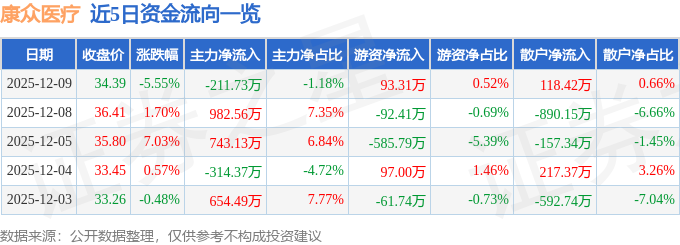 证券之星消息,截至2025年12月9日收盘,康众医疗(688607)报收于34.39元,下跌5.55%,换手率5.86%,成交量5.16万手,成交额1.79亿元。